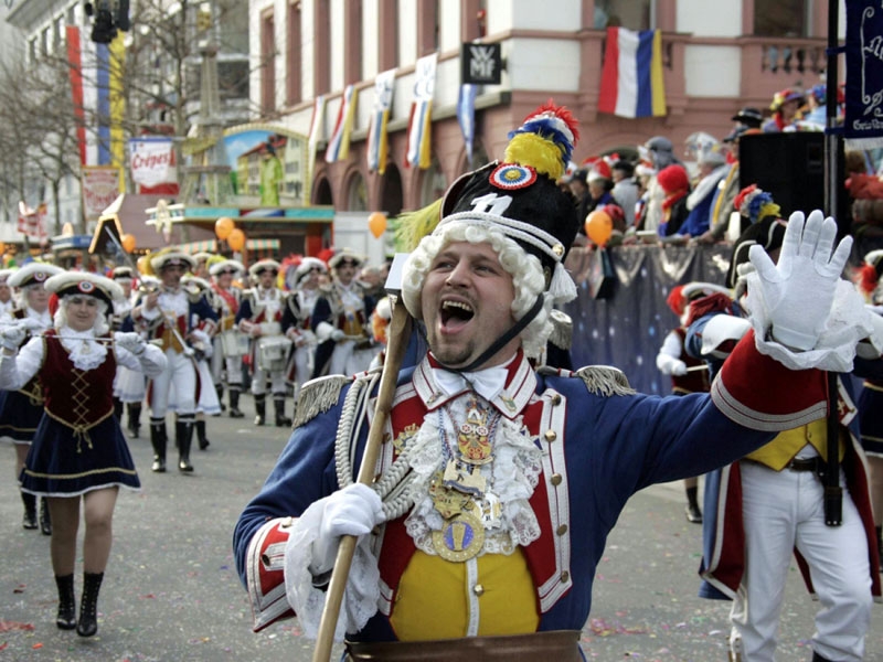 The carnival festivities of the city of Mainz are particularly rambunctious. Together with Cologne and Düsseldorf, Mainz is at the centre of Germany’s Shrovetide celebrations. The city’s Rose Monday parade is the absolute highlight. Looking back on over 170 years of history, it is one of the largest and most traditional of its kind. All of Mainz takes part in the parade, and the city centre is quickly transformed into a sea of colours. The parade, with its floats, marching bands, flag-bearers and traditional prince’s guards, commences at precisely 11:11 am, slowly meandering through city streets lined by tens of thousands of jubilant spectators.
