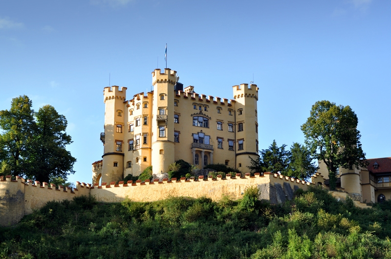 Very close to Neuschwanstein castle is located another castle. Hohenschwangau castle was built in the Middle Ages and already a ruin when Maximilian II of Bavaria, father to Ludwig II, discovered it in 1832 on a walk and decided to acquire it. Fascinated by the wonderful location, he built the castle in neo Gothic style within five years. It was used by the Bavarian royal family as summer and hunting residence.