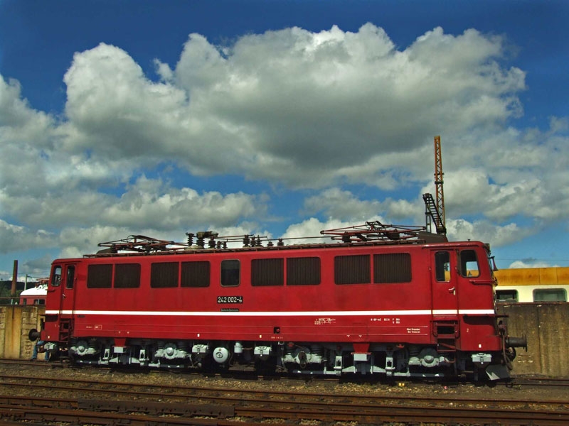 Photo: „Saechsisches Eisenbahnmuseum  Elektrolok Baureihe 142 (ex. DR 242) from Germany - Elektrolok Baureihe 142 (ex. DR 242). Lizenziert unter CC BY 2.0 über Wikimedia Commons