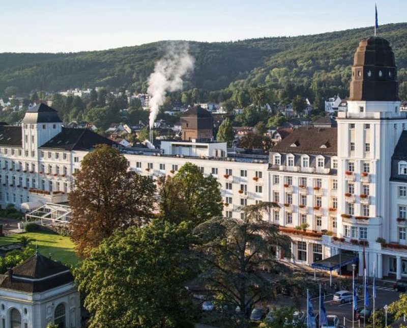 Located right at the Spa Park (Kurpark) the Steigenberger Hotel Bad Neuenahr offers its guests direct access to the Spa House with its thermal pool and to the Ahr Baths (Ahr-Thermen). Bonn, Cologne, Düsseldorf and the Nürburgring racing facility are amongst the place suited for daily trips. A total of 216 rooms and suites offer flatscreen TV, minibar, safe, desk and most of them also air conditioning. As a guest of Bad Neuenahr you will be presented a card to use public transport free of charge and also receive price reductions for entrance fees at touristic attractions.