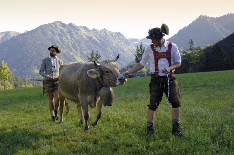 Allgäu/Bavarian Swabia is also a region that is of special importance where ancient customs are concerned. One example of this is the Viehscheid – the Allgäu variant of Upper Bavarian transhumance: In September, when the mountain summer is coming to an end, the young animals and dairy cows are brought back down into the valley. If the Alpine summer has been a good one and has seen the animals survive without befalling any accidents, the leading animals of the herd are adorned with a festive plaited wreath: the so-called Kranzkühe, which literally translates as "wreath cows" and is one of the most popular tourist photographs taken in the Allgäu. Down in the valley, the animals are ceremoniously returned to their owners during the Viehscheid. The custom dictates that the returning of the animals is accompanied by music and feasts. Lots of other traditional historical festivals can also be experienced live in Allgäu/Bavarian-Swabia.