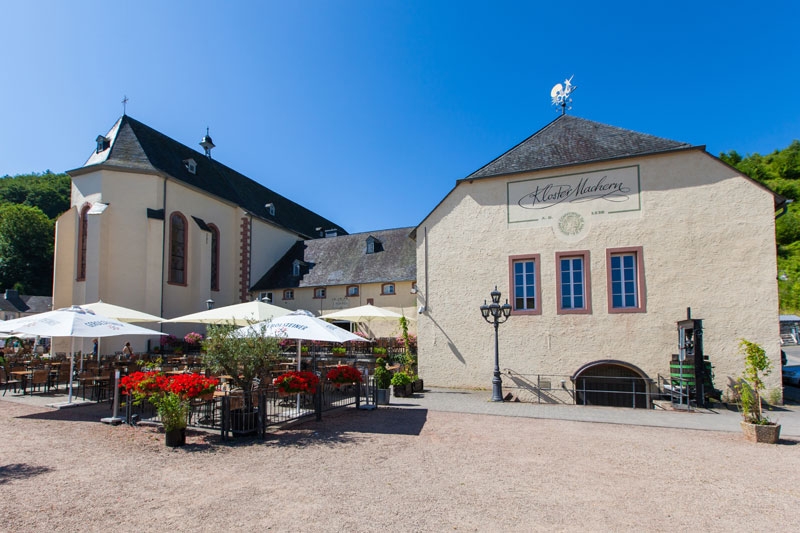 Located at the banks of river Moselle, Brauhaus Kloster machern in Bernkastel-Wehlen offers traditional German dishes and the art of first-class beer brewery in a wonderful historical ambiente. The kitchen regales you with "white" Bavarian sausages with sweet mustard and Bretzel, liver dumplings with gravy, knuckle of pork with "master brewer" sauce or Tarte Flambee.